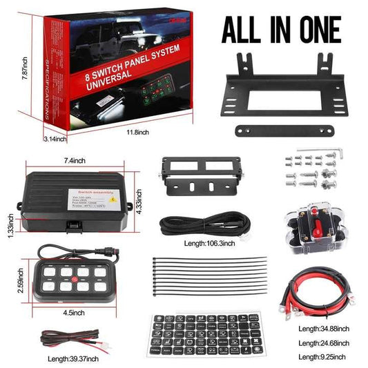 8 Gang Switch Panel Universal Circuit Control Relay System Box with Automatic Dimmable On-Off LED Switch Pod Touch Switch Box