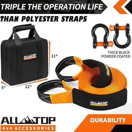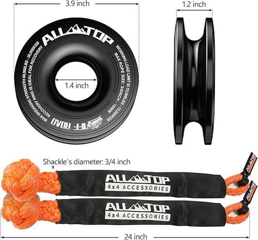 ALL-TOP Anillo de recuperación de 66000 libras, anillo de remolque de cabrestante, sistema de polea de aparejos, correa de seguridad de retención de cuerda incluida