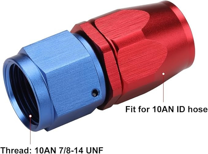 - Tamaño: AN10 (7/8-14 UNF) conector de extremo de manguera giratoria recto. Para uso con manguera trenzada de acero inoxidable y manguera trenzada de nailon. No funciona con manguera de bloqueo de empuje o manguera de PTFE