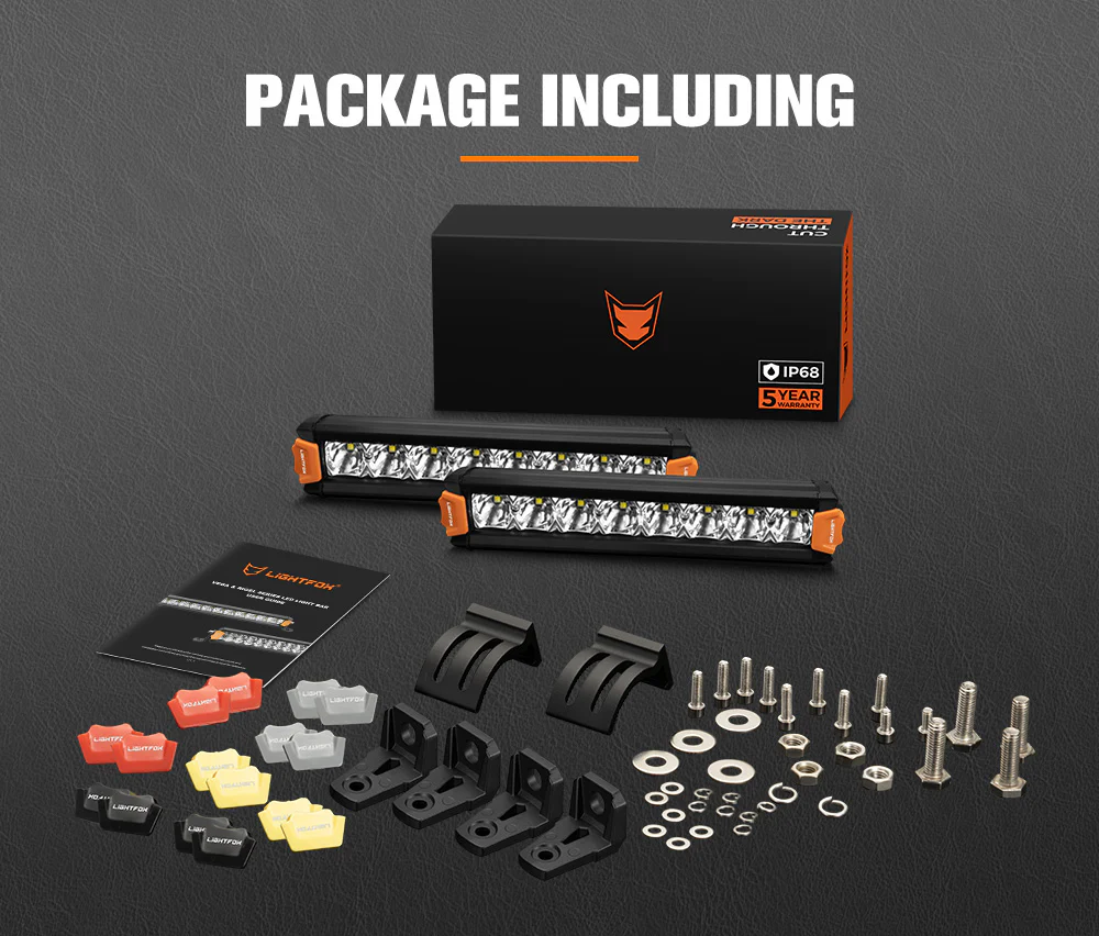 - 2 x Lightfox 8” LED Single Row Light Bars