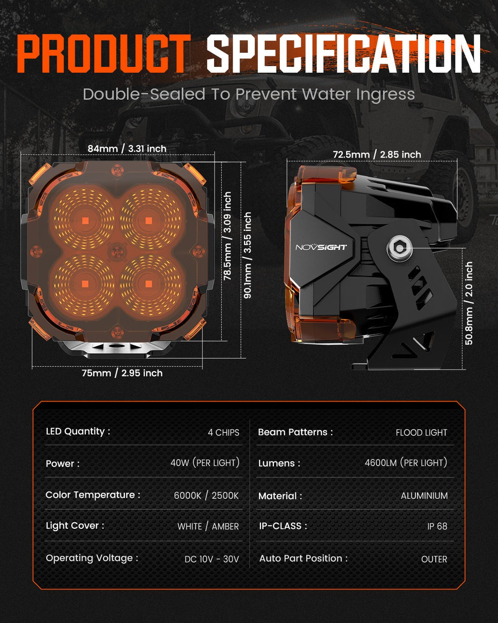 NOVSIGHT CYBER 1 Series 3 Inch Cube LED Pod DRIVING Lights