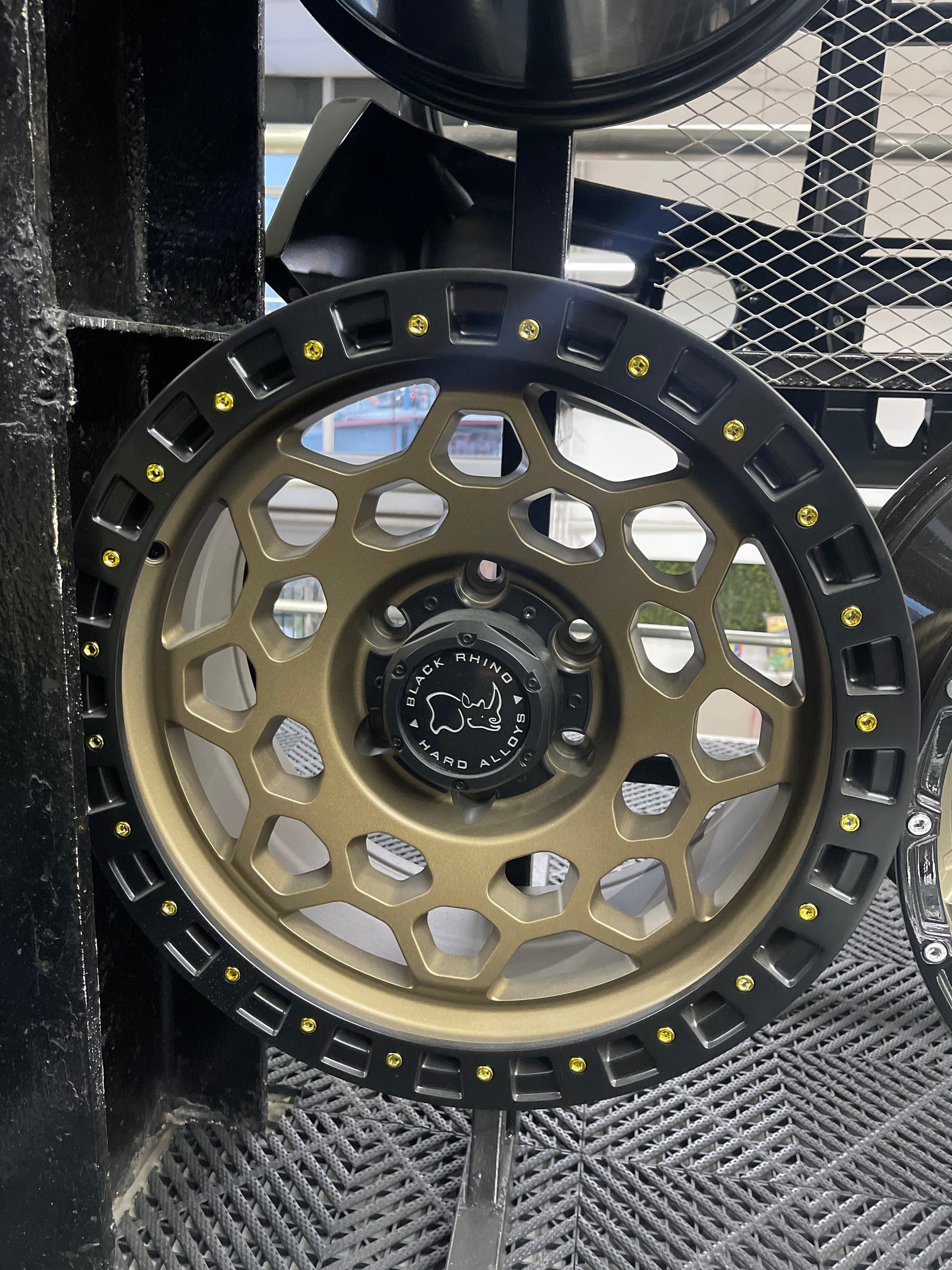 17X8.5 ET-12 6X139.7 CB106.1 MATTE BROWN MATTE BLACK LIP GOLD RIVETS